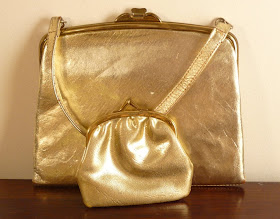 Lovely vintage evening handbag in soft gold leather. It has a matching coin purse and a mirror, which is original.
